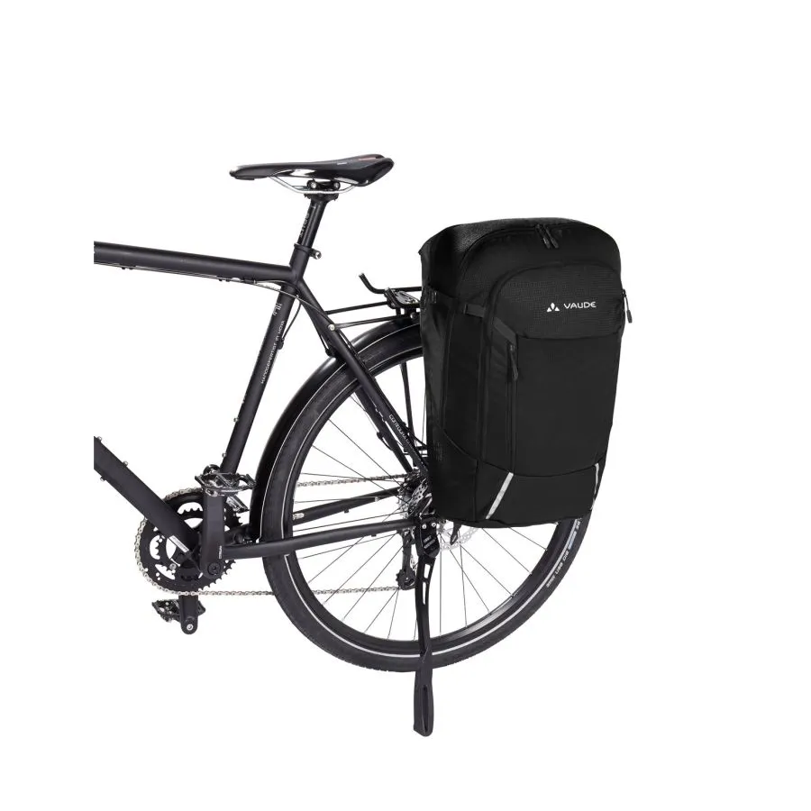¿Mochila o alforja? ¡Ambas! Es la acompañante ideal para quienes van y vuelven del trabajo y desean que la bolsa se pueda fijar de forma segura a la bicicleta durante la marcha y también quieren usarla como mochila en el tren, el bus o la universidad.