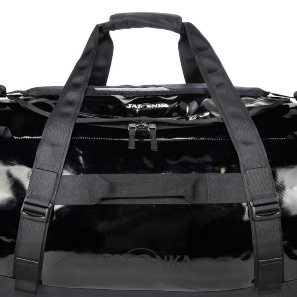 Resistente bolso de viaje con correas de hombro desmontables tipo mochila, fabricada con material de lona revestida de TPU. La gran abertura con cremallera facilita la carga de la bolsa, y las asas en los cuatro lados, las amplias asas de transporte y las correas desmontables para los hombros tipo mochila garantizan un fácil manejo. La bolsa dispone de bolsillos organizadores planos en el compartimento principal, un espacioso bolsillo con cremallera de acceso externo en la parte delantera y correas de compresión para reducir el volumen en caso necesario.