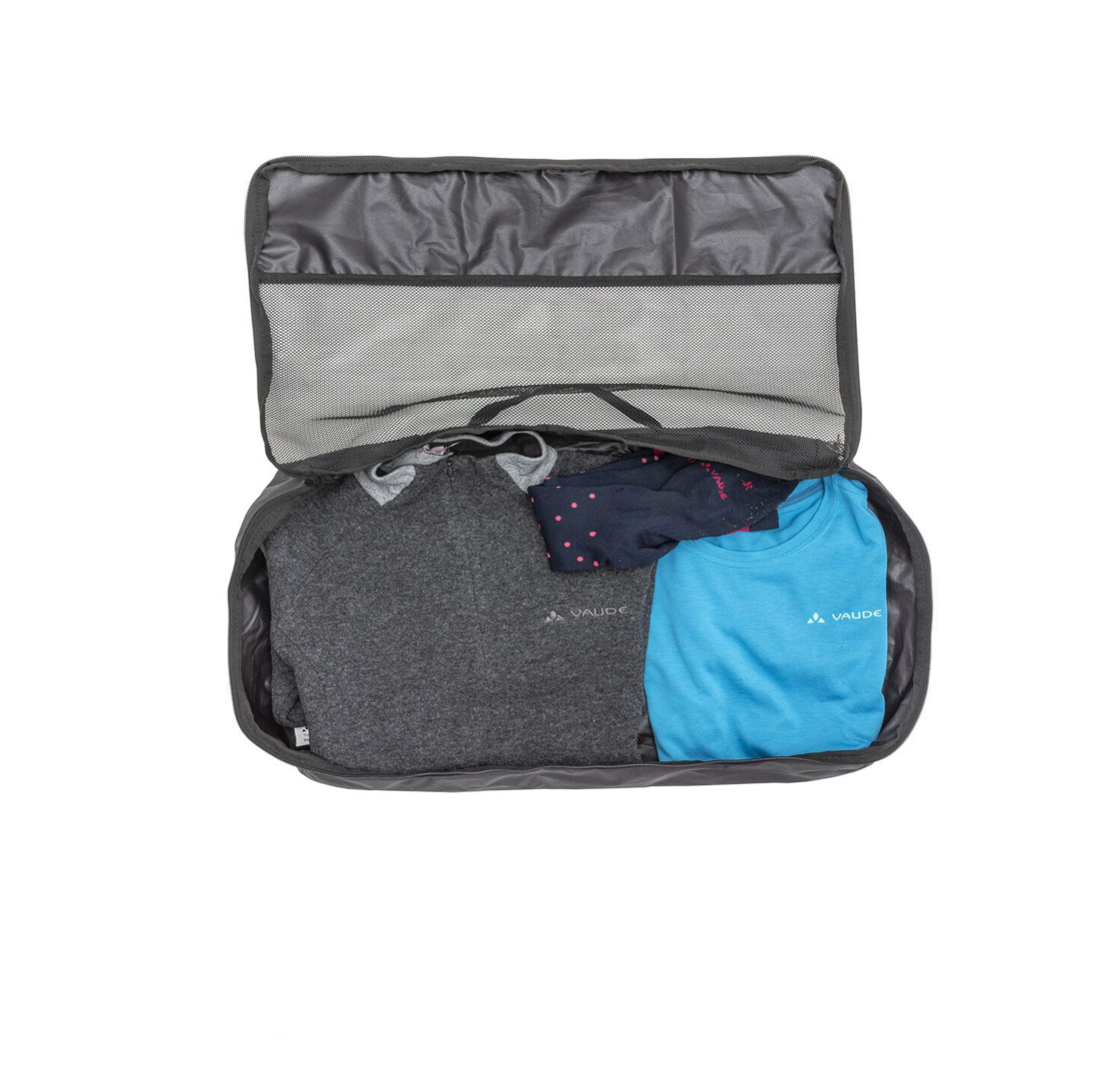 Organizador de viaje compacto para prendas grandes, con diseño práctico y fabricado con materiales 100% reciclados.