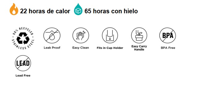Botella térmica boca ancha de acero inoxidable. Libre de BPA. Úsala con tu tapa favorita.