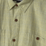 Camisa de manga corta ligera para uso diario hecha con tela ligera de cáñamo y algodón orgánico para comodidad y frescura en climas cálidos.