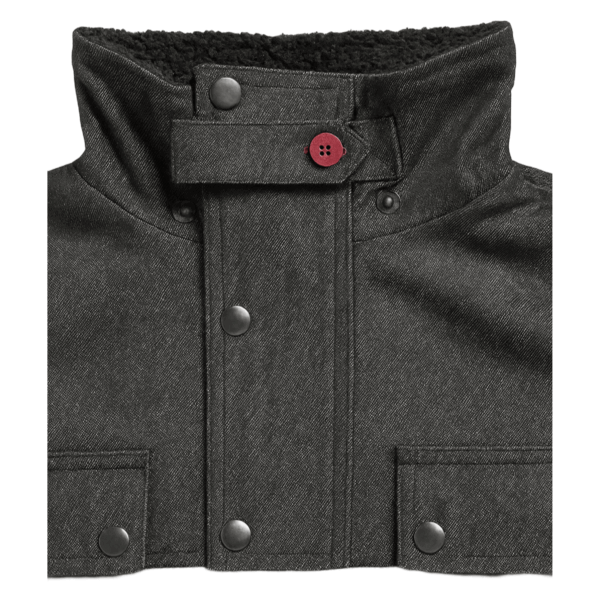 Cuenta con capucha desmontable y cuello alto forrado en chiporro suave, ideal para protegerte del viento y mantener el calor corporal. Los cierres metálicos y broches frontales refuerzan su carácter utilitario, mientras que los bolsillos amplios ofrecen espacio para lo esencial durante tus recorridos diarios o escapadas al aire libre.