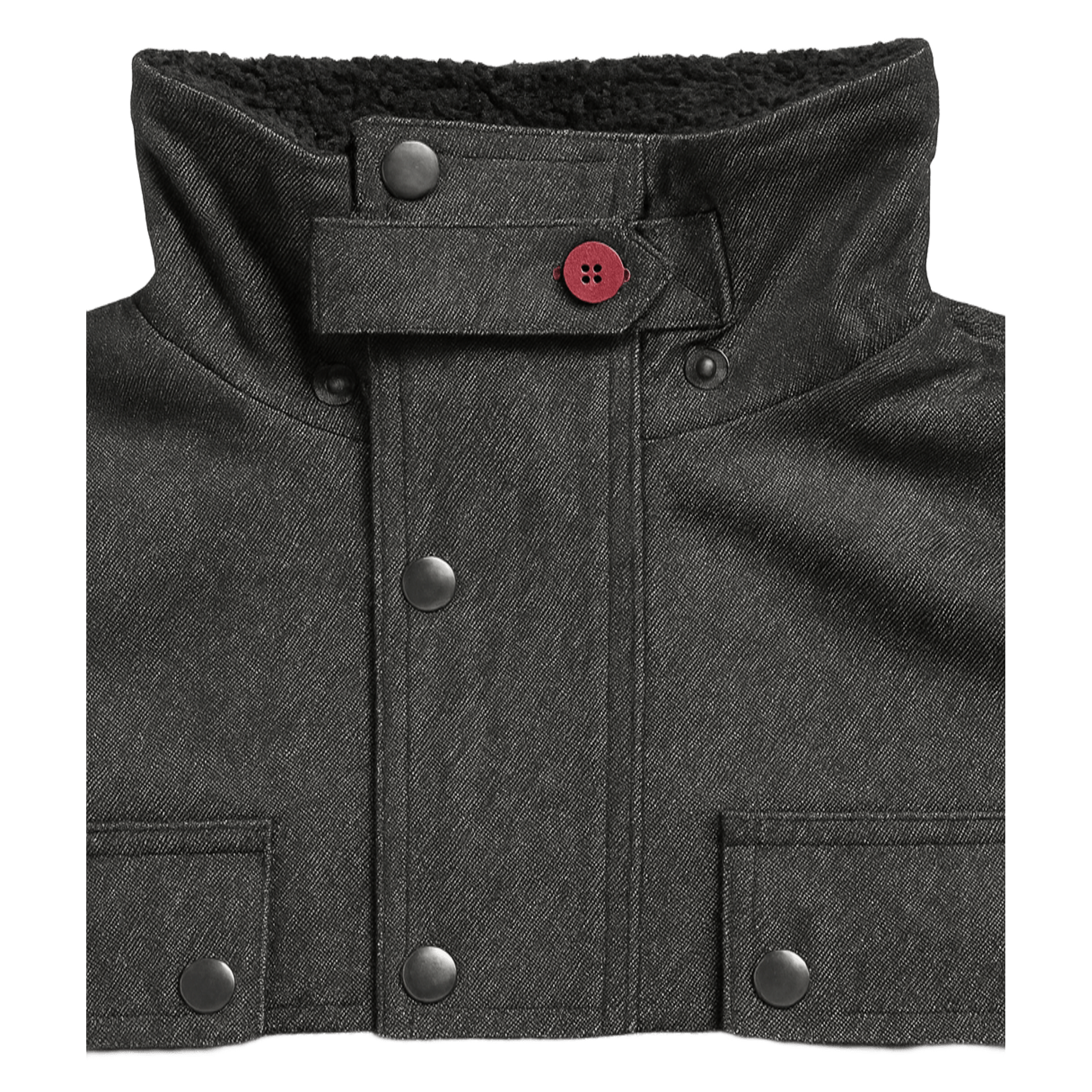Diseñada para el frío y la vida al aire libre, la Escocesa Koy combina paño grueso y denim oscuro en una prenda resistente, cálida y con un estilo clásico del sur.