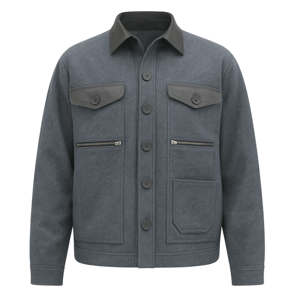 El interior forrado en tela escocesa roja aporta confort térmico y un toque clásico, mientras que los detalles en cuero natural —como el cuello, los bolsillos y las terminaciones— le otorgan durabilidad y carácter. Su cierre frontal con botones, junto a los bolsillos con cremalleras metálicas YKK, entregan practicidad sin perder estilo.