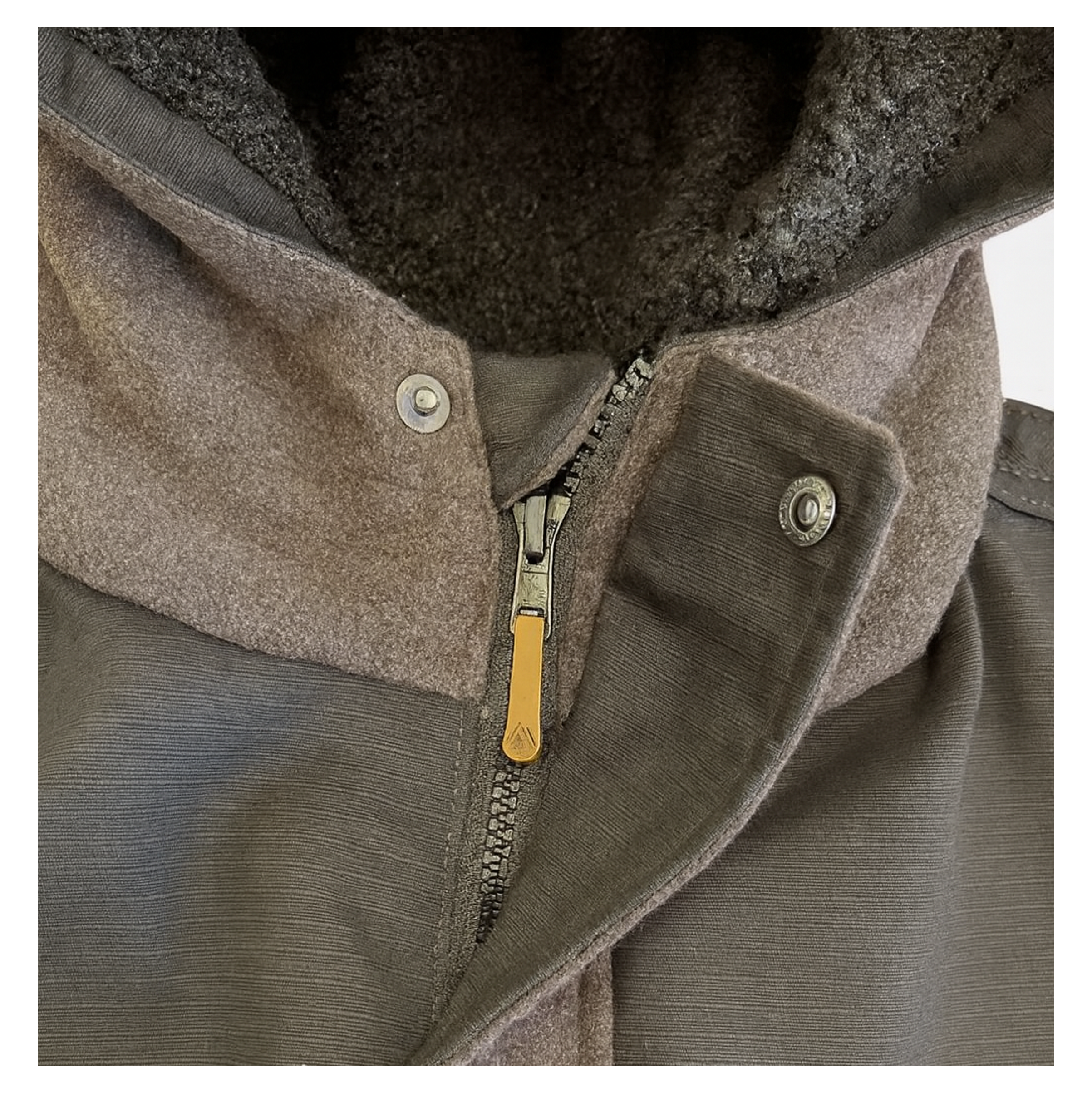 Prenda robusta y cálida confeccionada en paño grueso con refuerzos en canvas y forro térmico de chiporro, diseñada para resistir el frío austral con estilo, durabilidad y carácter.