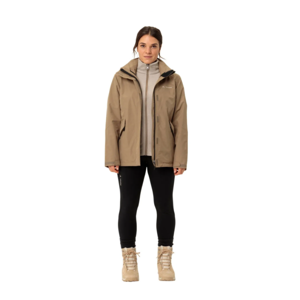 ¡Atención, amantes de la naturaleza! Esta chaqueta doble para mujer es una prenda imprescindible. Cuenta con una membrana impermeable y cortavientos que se adapta fácilmente a las condiciones climáticas cambiantes de la montaña. La chaqueta exterior no solo es resistente a la intemperie, sino que también es una elegante compañera para aventuras durante todo el año. La capucha ajustable se puede extraer rápidamente del cuello cuando sea necesario para proteger la cabeza y el cuello de la lluvia. La cómoda chaqueta interior de forro polar afelpado te mantiene abrigada y seca en tus actividades más exigentes. Puedes usar cada parte por separado, pero la combinación de ambas chaquetas te prepara para una amplia gama de condiciones climáticas y de temperatura. Este producto está fabricado con un acabado ecológico resistente al agua, elaborado sin fluorocarbonos (PFC). La cremallera frontal de la chaqueta exterior es fácil de reparar, lo que la hace aún más duradera. La etiqueta VAUDE Green Shape garantiza productos funcionales y ecológicos, fabricados con materiales sostenibles y con certificación bluesign®.