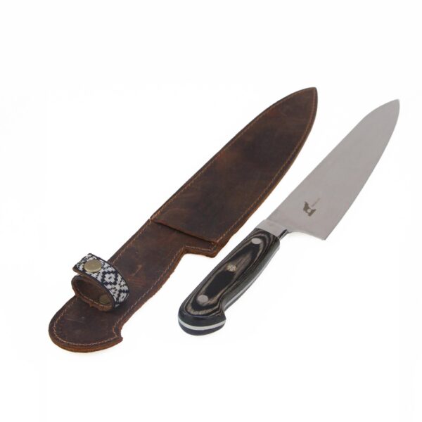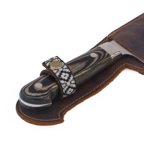 Precisión y resistencia en un diseño de acero alemán con mango ergonómico de fibra G10 y funda de cuero para mayor estilo y seguridad.