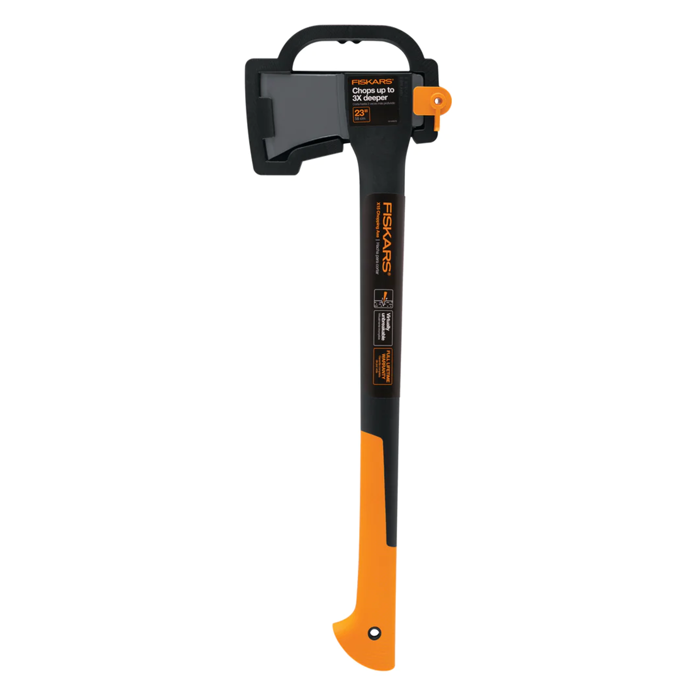 El mango DuraFrame que absorbe los golpes es liviano pero más resistente que el acero para evitar daños por golpe. Negro // Naranja // Plata. Hacha de Corte Fiskars Serie X15, posee un diseño polivalente que le permite cortar hasta 3 veces más profundo, logrando que sea fácil y rápido derribar árboles.