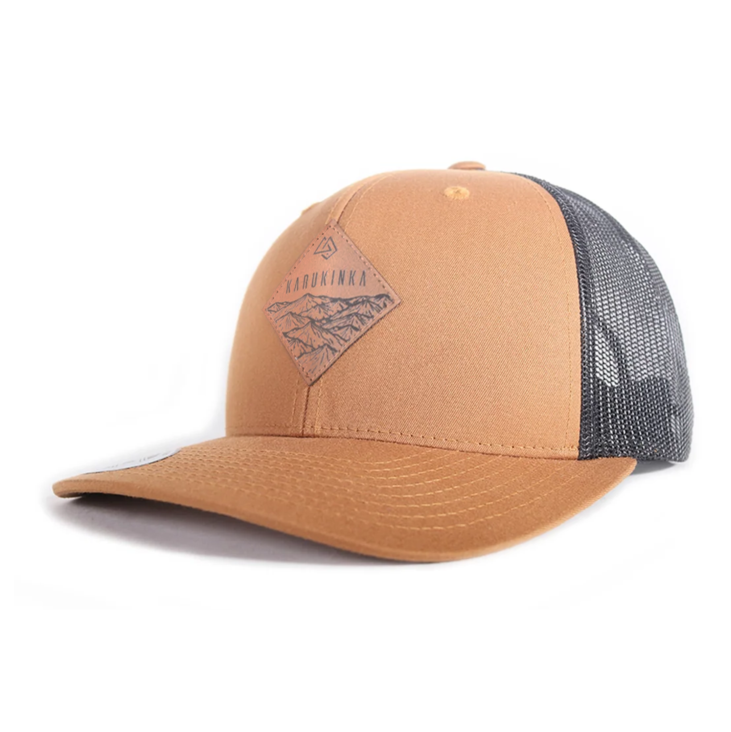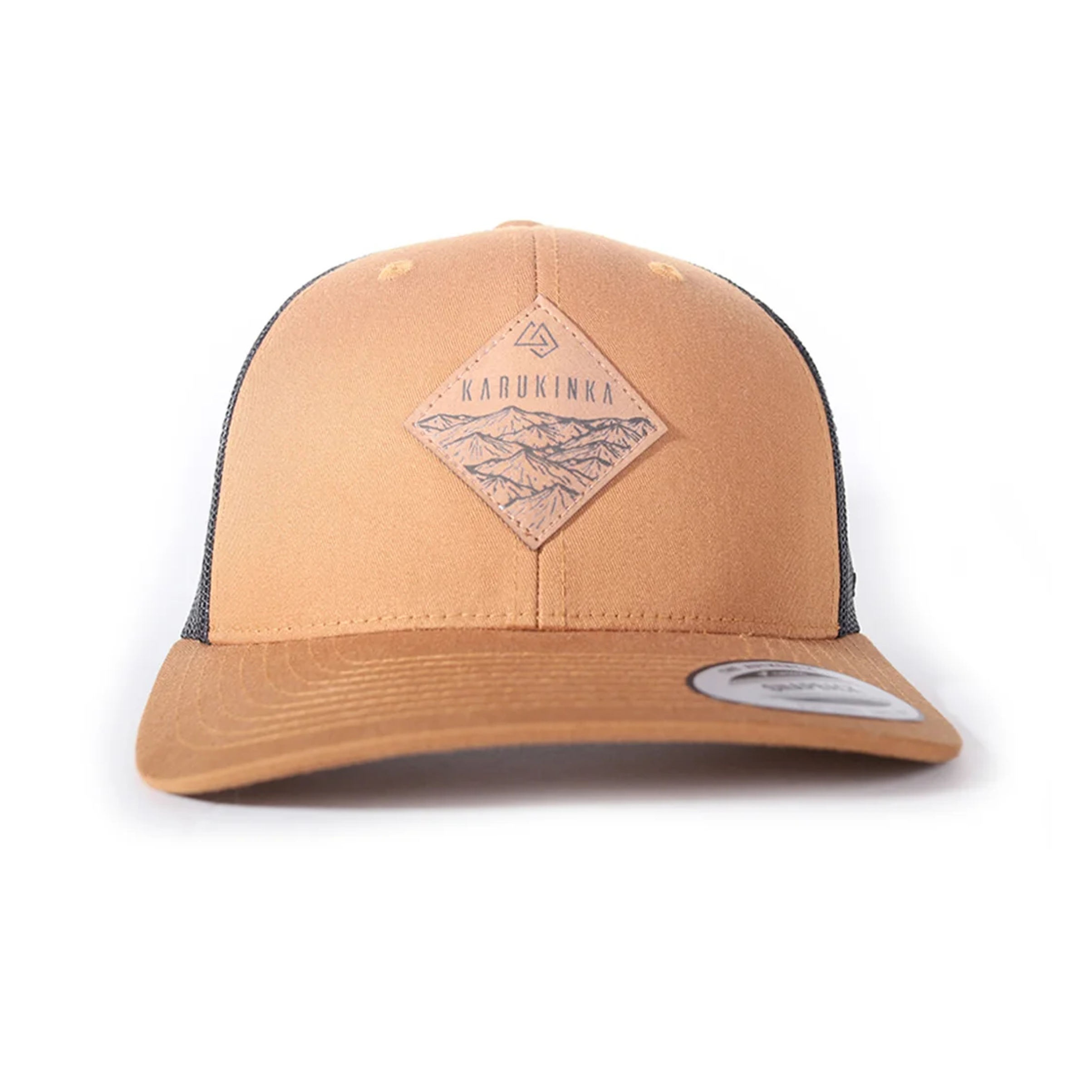 Clásico retro con malla premium, 6 paneles, visera curva, parche de cuero y talla única, customizado en Chile.