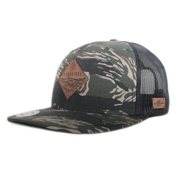 Clásico retro con malla premium, 6 paneles, visera curva, parche de cuero y talla única, customizado en Chile.