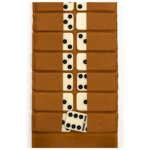 Juego de dominó artesanal con funda de cuero natural, hecho a mano en Chile para disfrutar y compartir donde quieras.