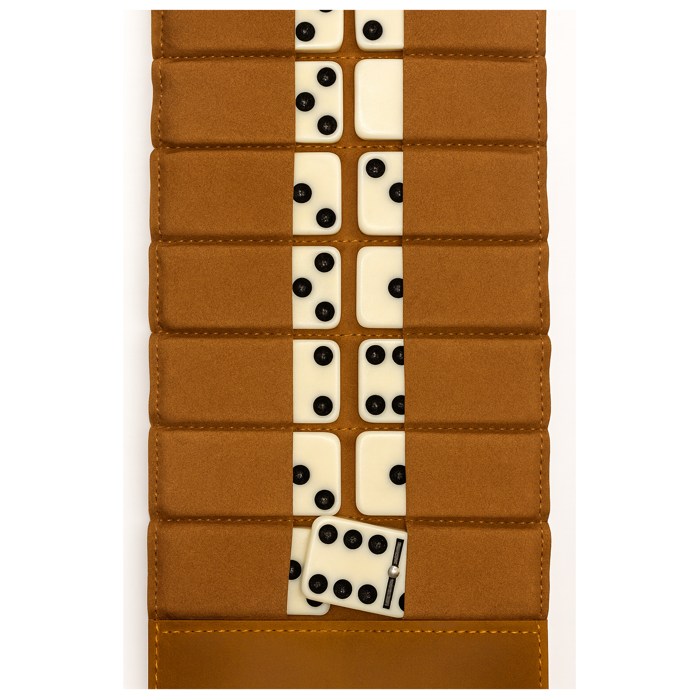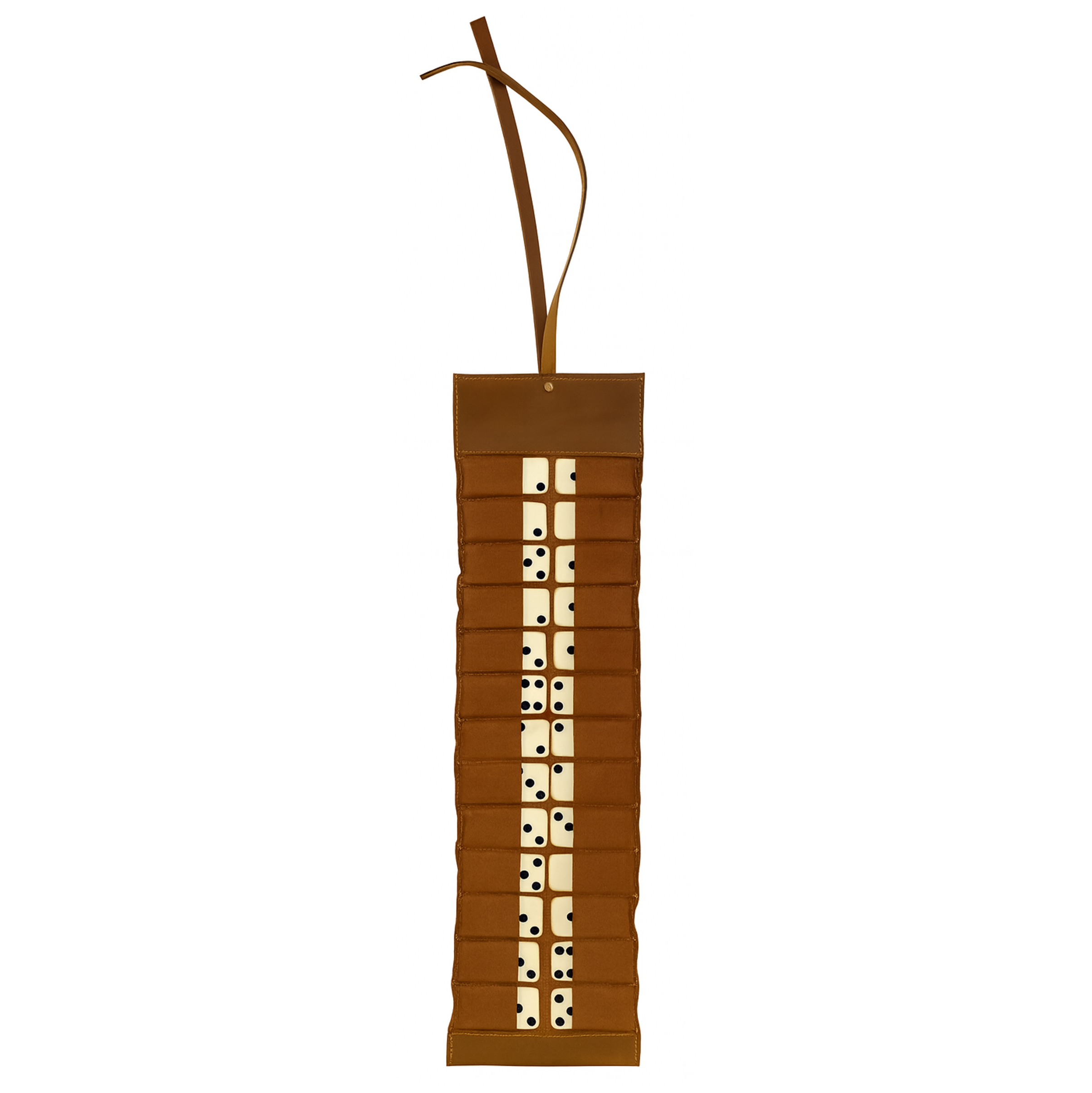 Entre tradición y diseño, este juego de dominó se presenta en una funda de cuero natural confeccionada a mano, pensada para acompañarte en cada viaje o encuentro. Su formato enrollable protege las fichas y permite transportarlo fácilmente, combinando funcionalidad y estilo en una sola pieza.