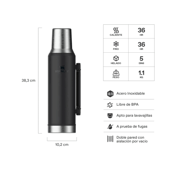 Mantiene tus líquidos frios o calientes por 36 horas.| La tapa mate no es térmica.