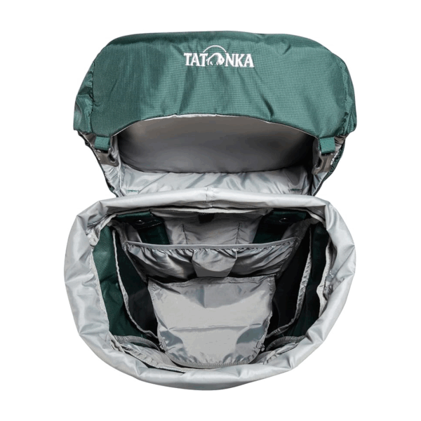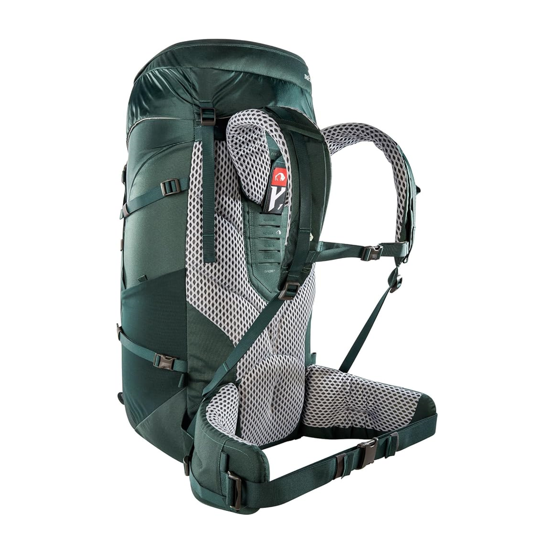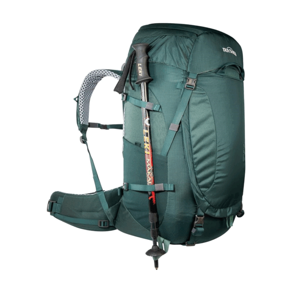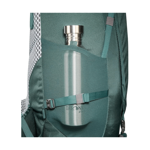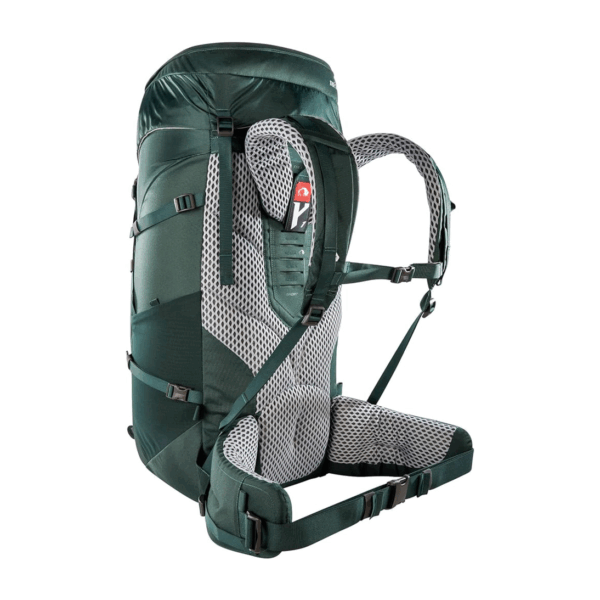 Modelo robusto y ajustable con sistema de transporte Y1, capacidad cómoda hasta 20 kg, múltiples compartimentos y accesos, compatible con hidratación y fabricado con materiales reciclados y acabado DWR sin PFC/PFAS.