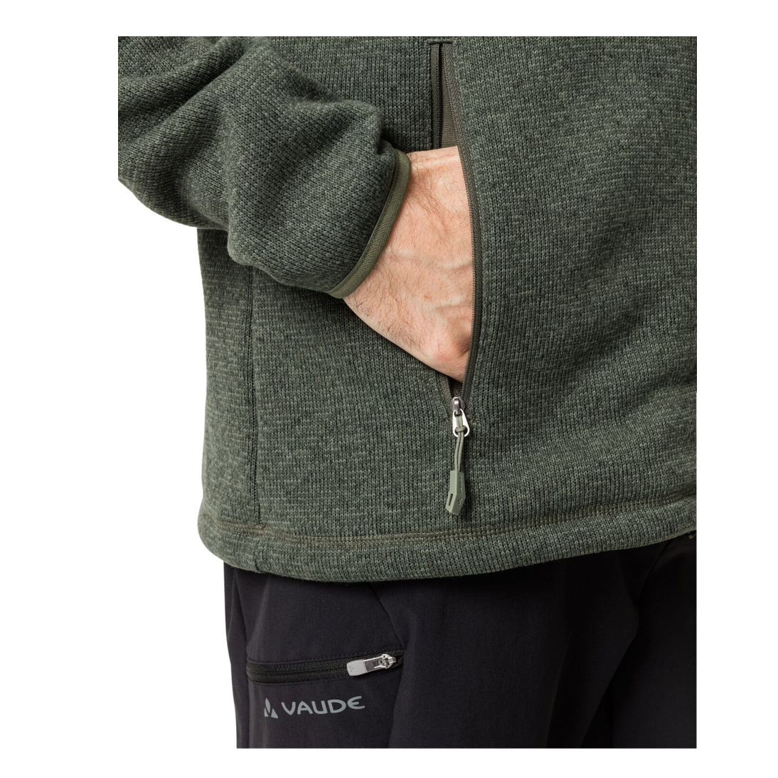 Esta elegante chaqueta polar para hombre tiene un aspecto similar al de un jersey y es la compañera ideal cuando bajan las temperaturas. El tejido polar ecológico (hecho con botellas 100% recicladas) te mantiene abrigado y seco incluso durante actividades que te hacen sudar. El polar es súper cómodo y muy duradero, una excelente opción como capa intermedia debajo de una chaqueta impermeable o una chaqueta de invierno, pero también es ideal para usarla sola en una excursión otoñal. Las costuras planas en los hombros de la chaqueta Rienza III garantizan una comodidad excepcional, incluso cuando llevas una mochila. Los dos bolsillos laterales con cremallera de la chaqueta polar para hombre te mantendrán las manos calientes y también te ofrecerán espacio para tus objetos de valor. El cordón ajustable en el dobladillo inferior pasa a través de los bolsillos, y los puños elásticos garantizan un ajuste perfecto. La etiqueta VAUDE Green Shape representa productos funcionales y respetuosos con el medio ambiente, fabricados con materiales sostenibles y con certificación bluesign®. Como miembro de la organización independiente Fair Wear con estatus de líder, VAUDE está comprometida con condiciones laborales justas y salarios justos.
