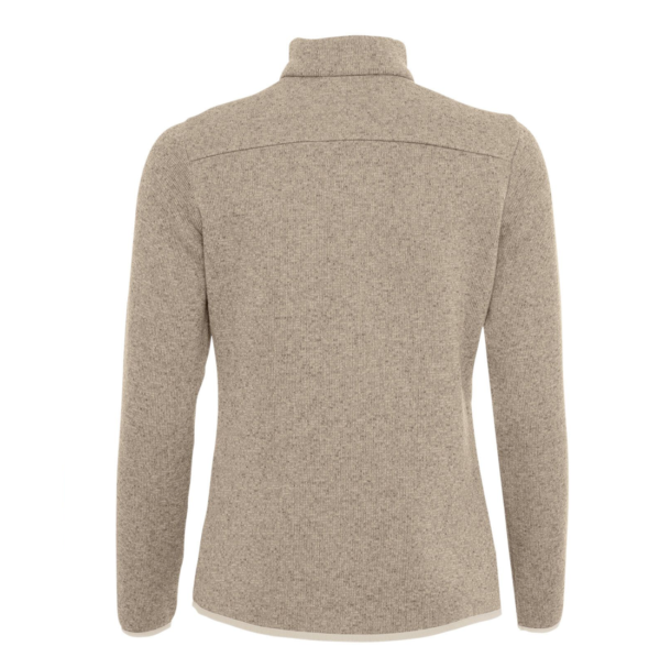 Polar femenina cálida, cómoda y versátil, ideal para uso diario o como segunda capa, fabricada con materiales reciclados y sostenibles.