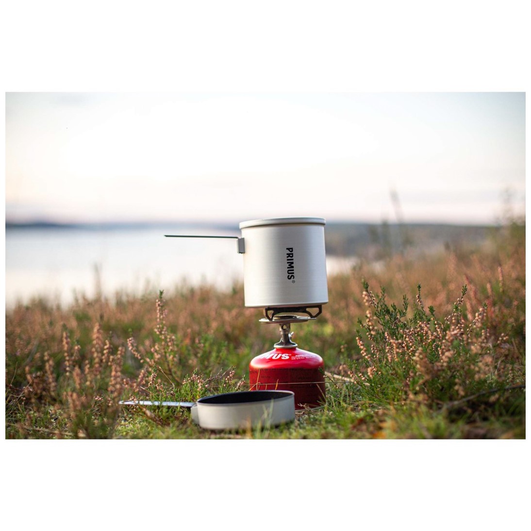 Nuestra olla Essential Trek de 1 Litro incluye dos asas. Uno de los mangos proporciona un agarre resistente para la olla y también asegura la tapa / sartén para empacar. El otro asa se usa para la sartén, por lo que tanto la olla como la sartén se pueden usar al mismo tiempo y se pueden empaquetar dentro de la olla.