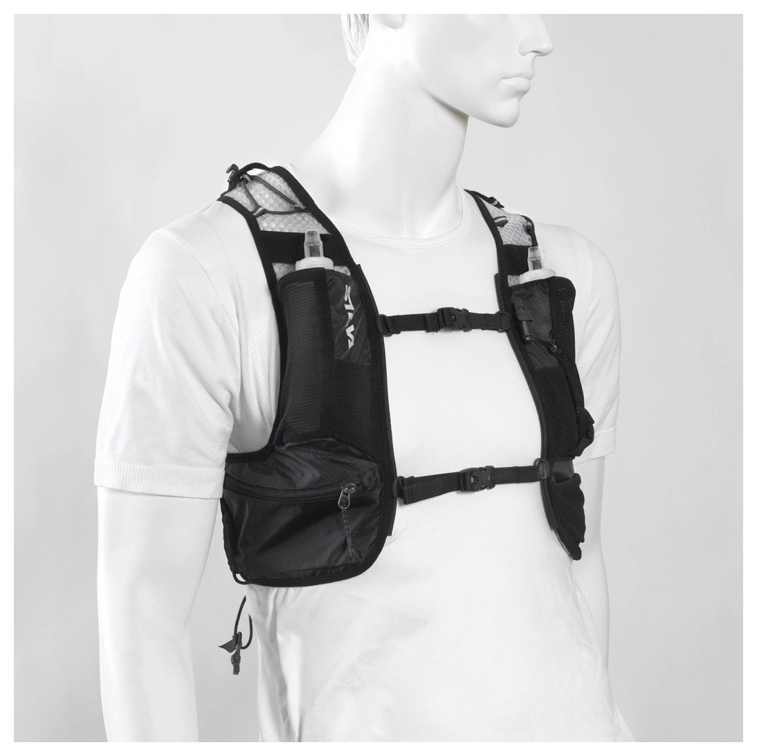 Strive Light Black 5 es un chaleco de running ligero, elegante y flexible de 5 litros con un compartimento para la bolsa de hidratación.