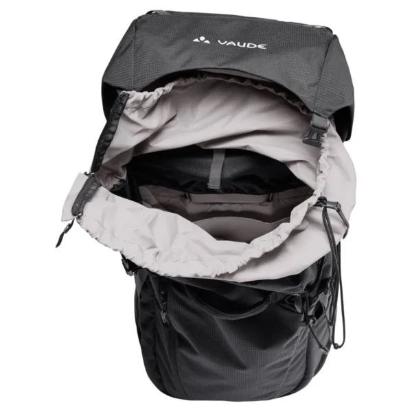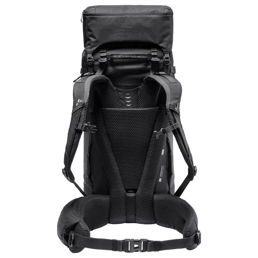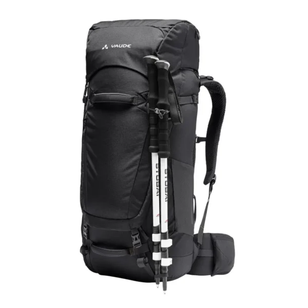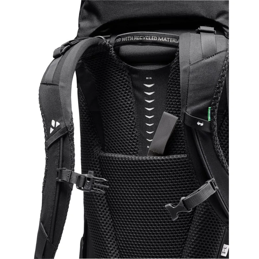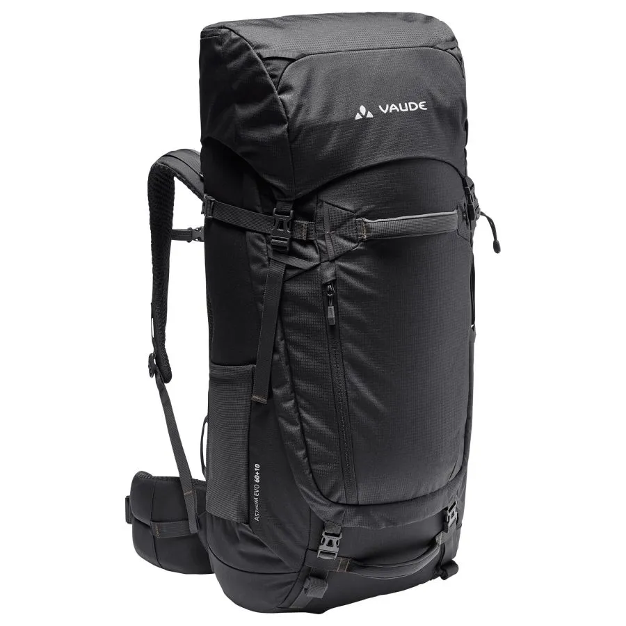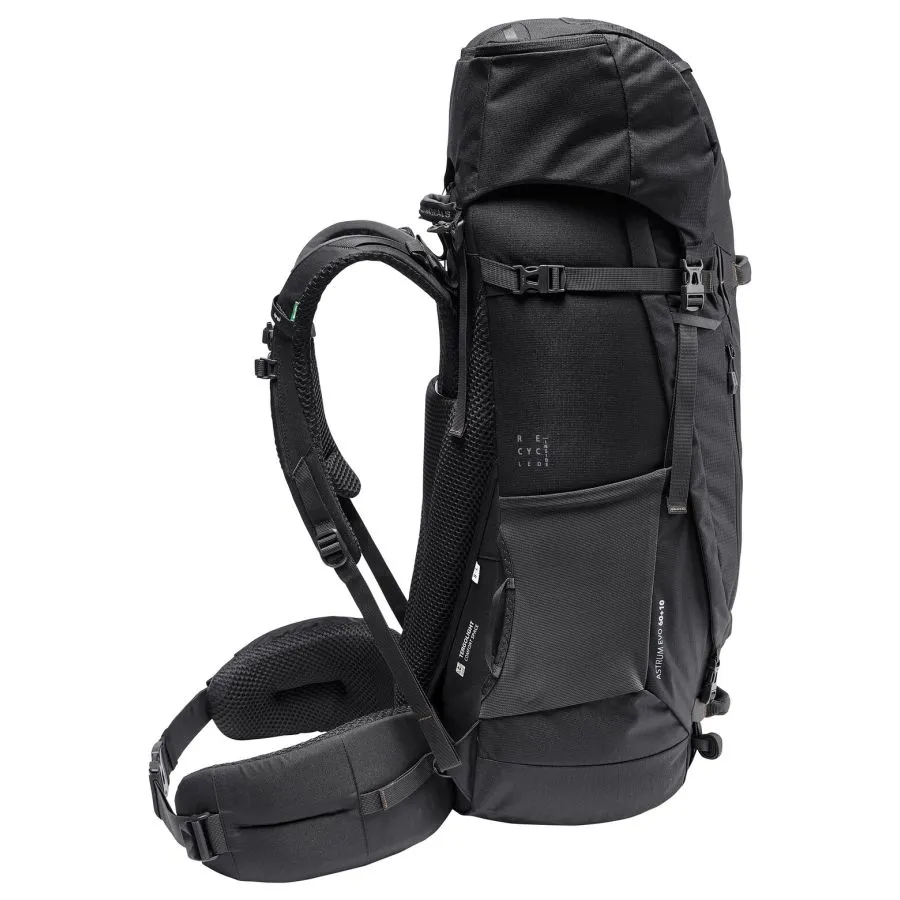 Espacio para tus sueños de viaje. Esta mochila grande te permitirá llevar todo lo que necesitas, no solo para mochilerismo, sino también para trekking y viajes de larga distancia. Con un volumen de 60 l, combina un generoso espacio de almacenamiento con una comodidad excepcional. El sistema de suspensión Tergolight Comfort Space distribuye la carga de forma óptima a través de su cinturón lumbar suavemente acolchado con bolsillo integrado. La espalda ajustable garantiza un ajuste perfecto a la longitud de tu torso. Incluso con una carga pesada, la Astrum es extremadamente cómoda para la espalda. Un hueco en la zona lumbar reduce la presión sobre la articulación sacroilíaca para una espalda sin dolor en rutas largas. Las correas de hombro Ergoshape permiten una amplia libertad de movimiento para los brazos. Práctica para mochileros, la mochila cuenta con tres asas acolchadas que facilitan su levantamiento. Gracias a su amplio acceso al compartimento principal, la mochila se abre como una maleta. La ropa sucia se puede guardar por separado en el compartimento inferior. Puedes acceder fácilmente a tu botella de agua o cámara desde los bolsillos laterales sin tener que quitarte la mochila. Fija equipo adicional, como una almohadilla aislante ligera, a las presillas portamateriales. El compartimento frontal ofrece espacio de fácil acceso para guías de viaje, etc. Puedes ampliar el volumen en 10 litros adicionales con la tapa desmontable y ajustable en altura. Simplemente quítala para guardar tus objetos de valor y comida mientras tu mochila está en el compartimento superior. La Astrum EVO está fabricada principalmente con materiales reciclados. La etiqueta VAUDE Green Shape es sinónimo de productos ecológicos y funcionales, fabricados con materiales sostenibles con certificación bluesign®.